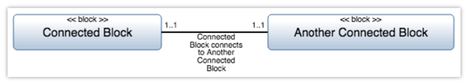 A ‘Logical Connection’ can be added to the ‘Block Definition Diagram‘ via drag-and-drop. The example used on this page connects two ‘Block’ constructs with a ‘Logical Connection.’
