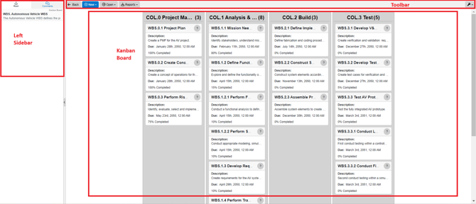 Innoslate users may select 2 parts of the Kanban Board, a column or a task. Below we will cover how the view changes when either are selected.