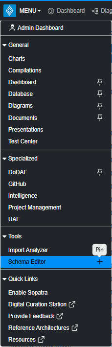 Pin the Schema Editor to the Navigation Menu be selecting the '+'.