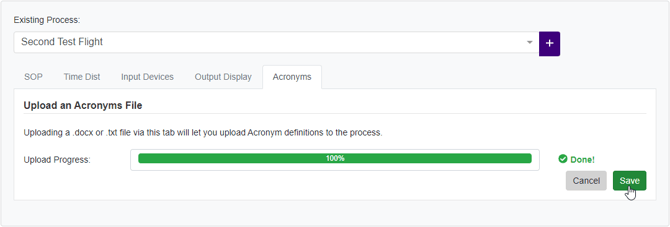 Drag and drop or click to upload an Acronyms file (.docx or .txt).