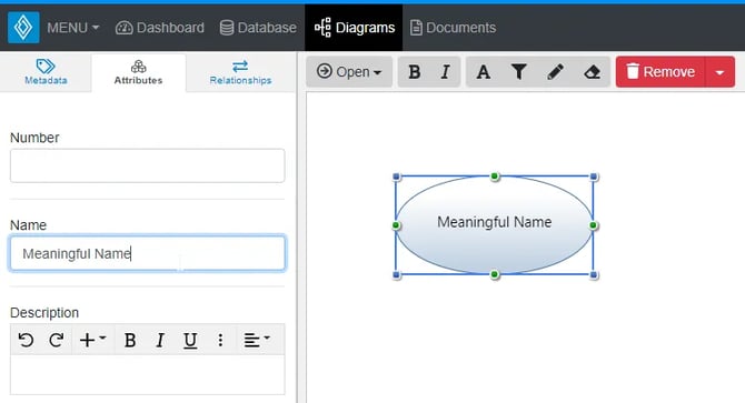 * Note: The ‘Remove’ button also includes a drop-down menu where you can select ‘Delete from Database’ or the default option of ‘Remove from Diagram.